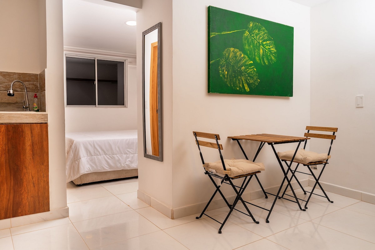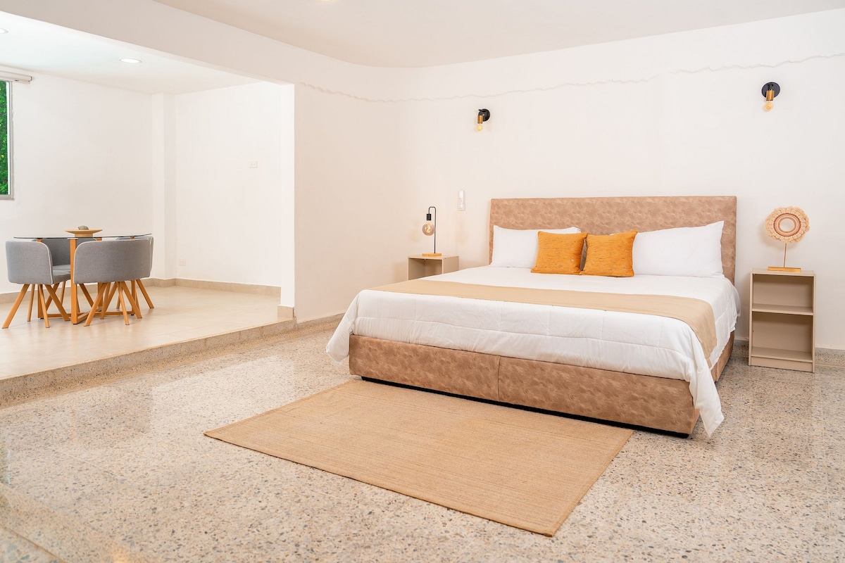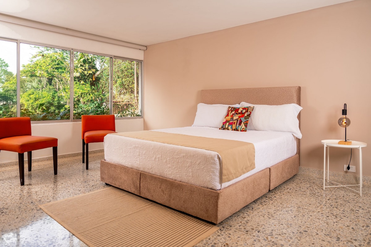 Enjoy our cozy room at Gardin Home Boutique, located in Ciudad Jardín, an exclusive area surrounded by nature, parks, shopping centers, designer boutiques, a wide variety of dining options, and private security. The room features a King-size bed, private bathroom, wardrobe, mini fridge, air conditioning, and Smart TV. You will also have access to the swimming pool, steam room, coworking space, gardens. Perfect for couples seeking comfort and relaxation while enjoying the charming city of Cali.