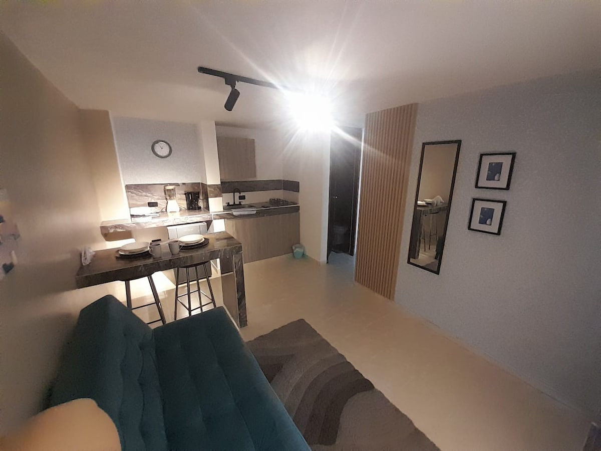 Este elegante y moderno loft es perfecto para quienes buscan comodidad y ubicación central cerca a las principales atracciones de la ciudad como Cristo Rey, la calle del sabor. A sólo pasos encontrarás variedad de restaurantes, supermercados, bares y sitios culturales que reflejan la esencia alegre de Cali. Contamos con las comodidades para una estancia placentera, incluyendo Wi-Fi, aire acondicionado, ducha caliente, cocina y una cama confortable. ¡Reserva ya y descubre la calidez de Cali!