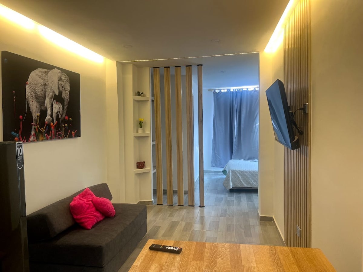 EXSTR APARTMENT ERE CENTENARIO 202 🌴 Stay in comfort and style in this elegant second-floor studio, ideally located in walkable Centenario — steps from the culture, gastronomy and nightlife of Bulevar del Río, Granada, and El Peñón. Featuring a European King bed, A/C, SmartTV, unlimited hot water, and a fully equipped kitchen. Dedicated fiber-optic internet (99%+ uptime) makes this a rare find in Cali, perfect for digital nomads, executives, solo travelers, and couples seeking a premium stay.