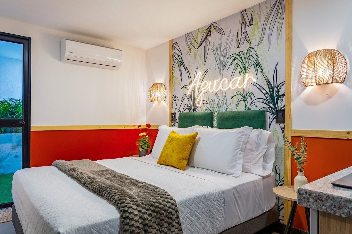 Azúcar, es un elegante alojamiento en primer piso del exclusivo proyecto Sueño Caleño. Ofrece cama Queen Size premium con cuatro almohadas, aire acondicionado, WiFi de alta velocidad, SmartTv cable internacional y cocina totalmente equipada. Destaca su patio privado que proporciona iluminación natural y mayor sensación de espacio. Accesibilidad sin escalones. Ubicación estratégica en Santa Mónica residencial con proximidad a zonas gastronómicas y centros comerciales como Chipichape (700 Metros)