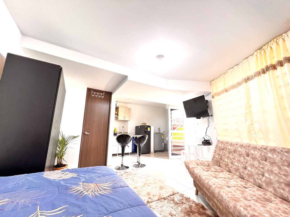 Cozy new studio-apartment, delivered in February 2023, Wi-Fi 300 Mbps, Living room, Dining room, Queen bed + Sofa Bed, private washer-dryer, Play station 4, smart TV, small safe, desk with Laptop included, Terrace with outdoor furniture, free parking outside the building . One of the quietest, most exclusive and safest neighborhoods in Popayán. It is located 5 minutes from the Campanario shopping center, 15 minutes from the historic center and 15 minutes from the airport, by car.