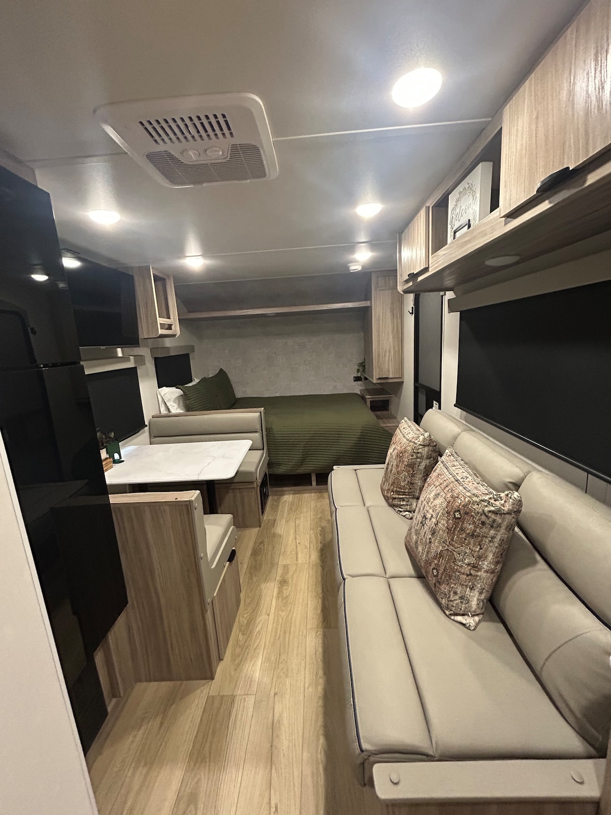 You'll have the optional to stay in a modern 2023 26' RV with PRIVACY only 2-3 blocks from CALIENTE resort. *OPTIONAL: Bring your own RV (MAX 35') for $90 daily! RV Rental Includes: Smart tv's, bluetooth sound system, electric fireplace, washer/dryer, WIFI, King size bed, closet, bathroom, . Common area with fire pit, deck, gas grill, 2 full kitchens, and a picnic table.