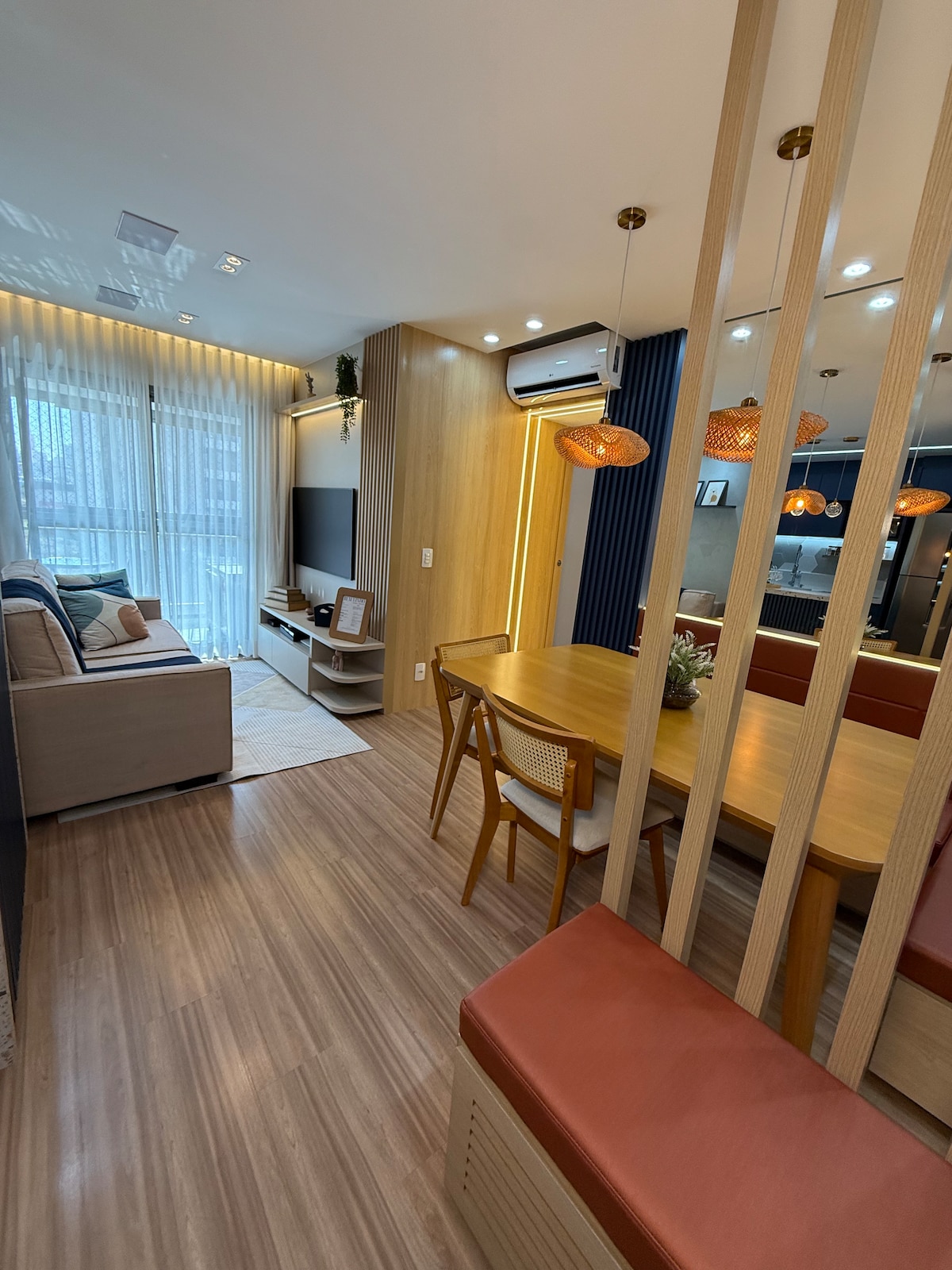 Apartamento amplo (74 m2), finamente decorado na Gleba Palhano. Para até 7 pessoas, ar-condicionado em todos os ambientes. Sacada protegida com screen glass e tela de proteção. Cozinha totalmente equipada. Lavanderia com lava e seca. Sala com sofá-cama, TV 55”, Wi-Fi 700MB e PS5 com PS Plus. Suíte master com cama king com cama auxiliar embutida, enxoval 300 fios e TV 50”. Quarto solteiro com cama auxiliar embutida, enxoval 300 fios e TV 43”. Piscina, academia, 2 vagas de garagem exclusivas!