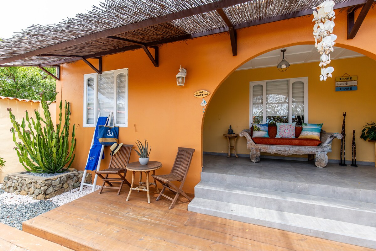 Completely new suite with an oceanfront view. You will be able to experience some of the most beautiful sunsets on the island firsthand! Outside facilities include a gazebo, hammock and dock providing easy access to the ocean, ideal for swimming. Kayaks and snorkeling gear are also available free of charge! Located at a relatively quiet part of the island, known as a prominent fishing area. Some of the best seafood restaurants are located on the same street (Zeerovers and Flying Fishbone).
