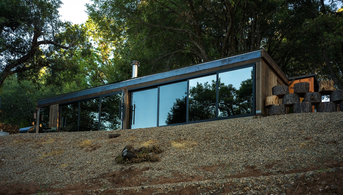 Escape to a modern, beautifully designed container cabin tucked among the tall trees of Pioneer. This peaceful retreat offers total privacy, clean modern comfort, and a cozy atmosphere perfect for couples, solo travelers, and anyone needing a quiet reset. Enjoy morning coffee in your private sunroom, evenings by the fire pit, and star‑filled skies you simply can’t get in the city.