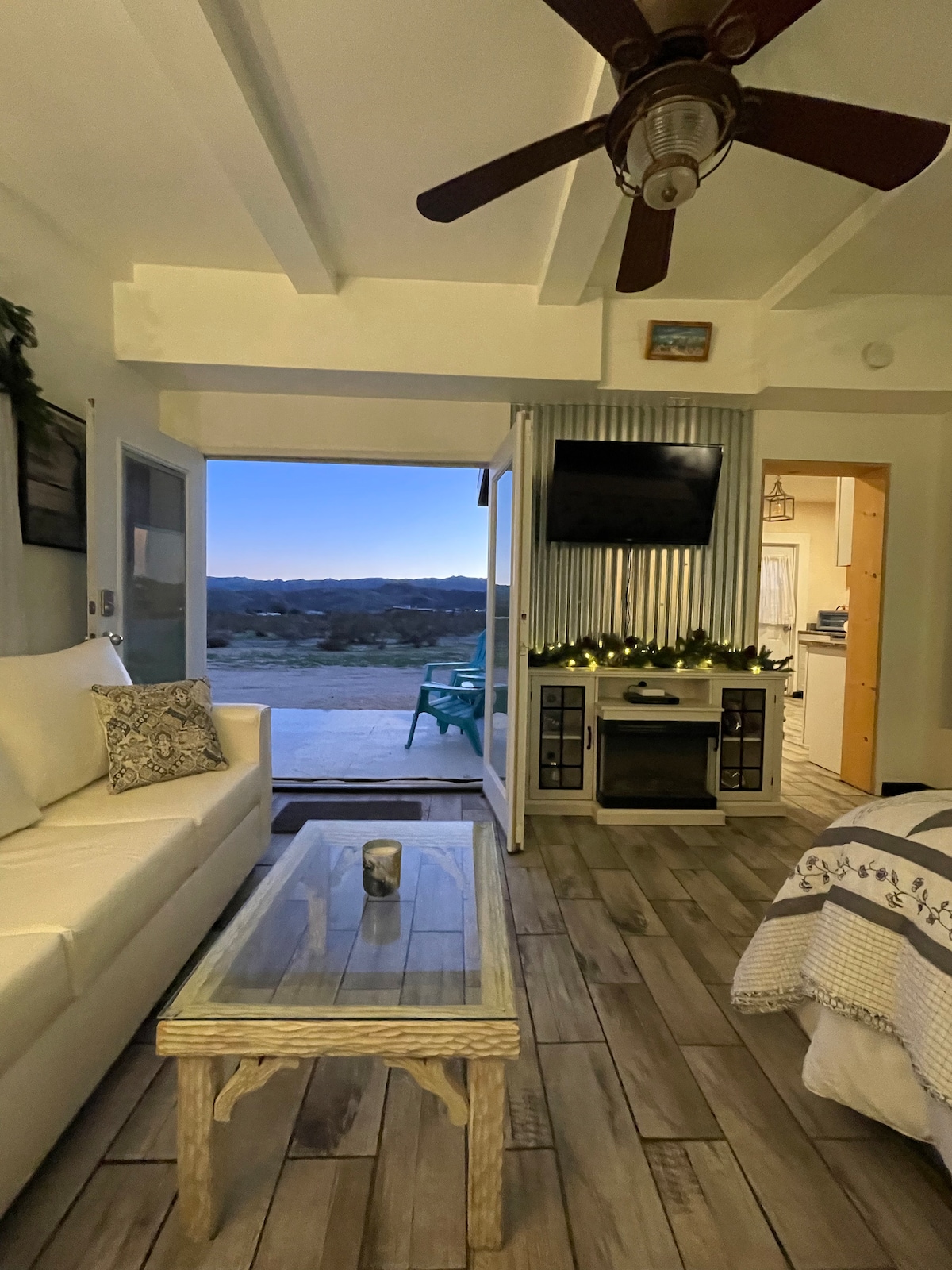 A design-conscious retreat w/ mountain views! >>this is the place honors form + function equally with solid brass fixtures, a copper bartop, stained concrete floors, and vintage cotton Matteo linens. Curated modern + vintage elements blend to cultivate a space of rest, reflection & creative flow. Private outdoor space with gas firepit & grill. Within easy walking distance of Noah Purifoys Outdoor Art Museum. 8min to downtown, 15 to the park. Our modern sanctuary is ideal for the art-minded soul.