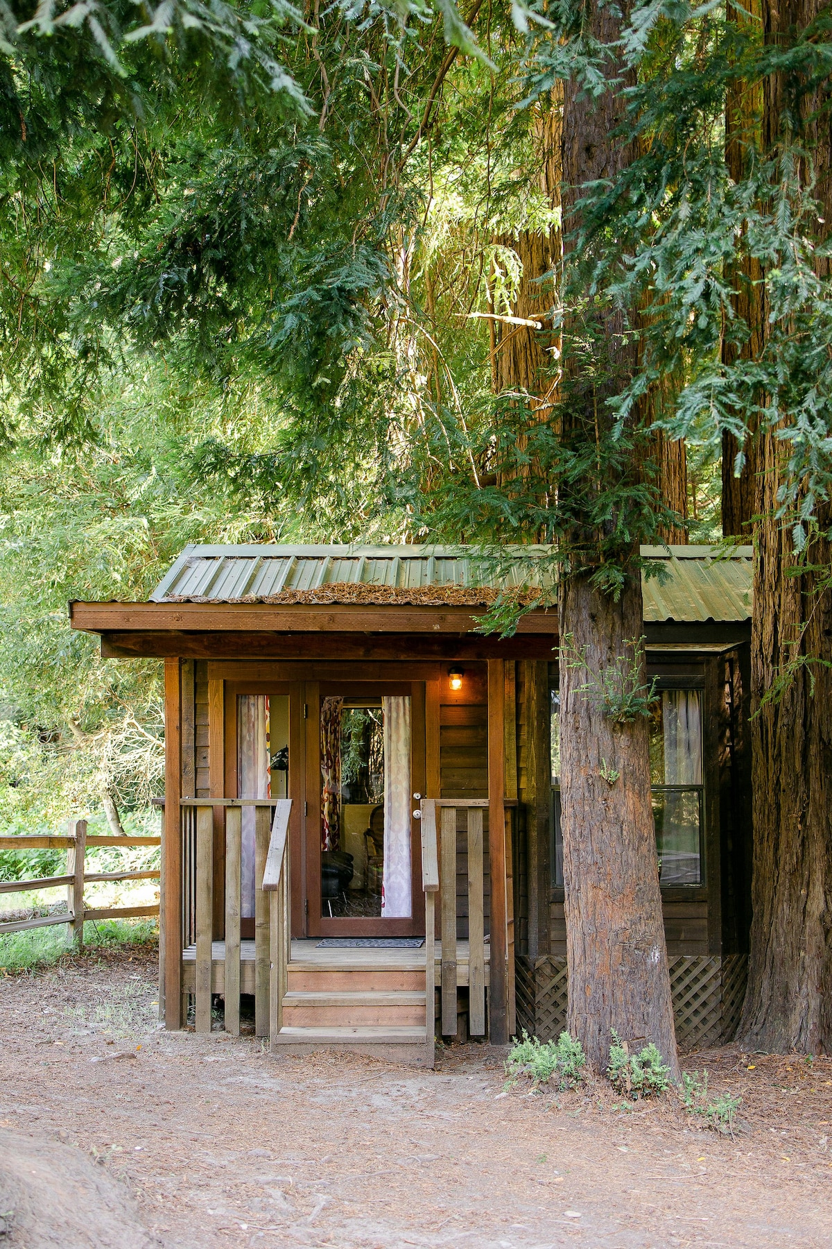 The Deluxe Studio Cabin is a spacious studio with a queen bed and a two-person shower. There is a couch and chair in sitting area with gas fireplace. The wet bar has a small refrigerator, sink, dishes and flatware. Dining table with chairs. The front porch has a table, chairs, and umbrella. TV-Free Zone. No a/c ceiling fan. Cabin is approximately 320 sq. ft. The Highlands is an adult-only property.
