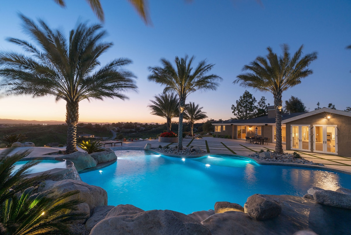 Welcome to the Grand Pacifico. Where peace and serenity meets sophistication, style and luxury. This unique & dreamy one of kind vacation resort is the crown jewel of our Fallbrook/Temecula collections. Enjoy million dollar panoramic views from nearly every room with a cascading infinity pool vanishing into the sunset. Our first review stated : "This is the BEST vacation place we’ve ever stayed at". We invite you to come and see what the buzz is all about. This South Pacific paradise awaits you!