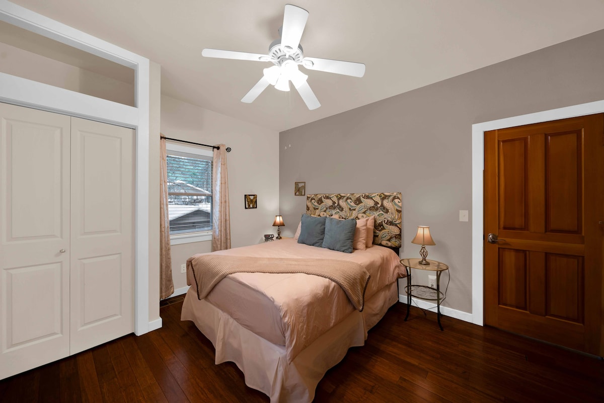 Cozy, cabin-style creekside suite just steps from Donner Lake. Ideal for families, couples, or friends, with queen bed, bunk beds, gas fireplace, A/C, private entrance, fast WiFi, HDTV, workspace and free EV charger. Soak in the guest-favorite hot tub under the stars, then enjoy breakfast with burritos, pastries, fruit, yogurt & more. Easy self check-in. Nestled in forest, minutes from Sugar Bowl, trails, free shuttle, and Truckee’s charming downtown. Guests call it the perfect basecamp getaway.