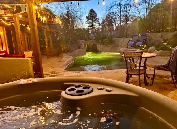 Just 15 minutes from Palm Springs, you'll find Whitewater Cabin. Seen in Travel & Leisure and on Discovery Plus, this architectural marvel is a magical retreat in the beautiful Whitewater preserve. Massive hand-carved cedar timbers form a bucolic A-frame exterior, while luxurious décor sets an ideal atmosphere for romance…or simply escaping the hustle and bustle. Explore Whitewater Preserve, enjoy a desert hike, plunge into the oasis pool and then settle in for some remarkable stargazing.