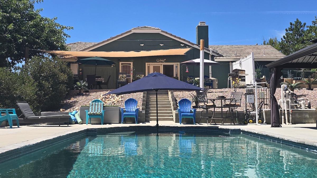 Enjoy the view of the snow capped Sierras while soaking in the hot tub, reading on the private porch, or sitting next to the cozy fireplace indoors. Private, secluded Guest Suite with private entrance. A new kitchenette has been added for convenient cooking. Play a game of shuffleboard or sip a glass of wine while sitting by the outdoor fire pit. Our home is nestled under a canopy of conifers next door to the Tahoe National Forest and only a 5 minutes drive to downtown Nevada City.