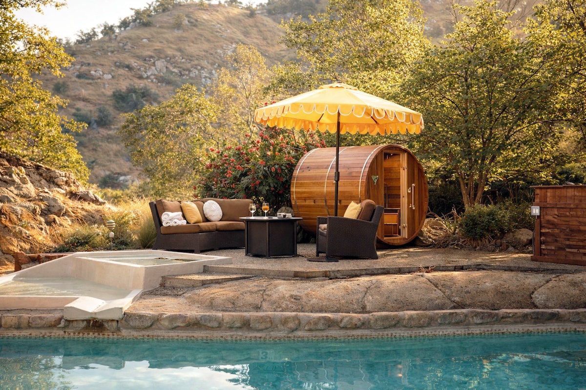 ▪︎ Sleek modern pool with heated spa and tanning shelf ▪︎ Dedicated wellness area with barrel sauna, cold plunge, shower, and Joshua Trees ▪︎ Stunning sunset and sunrise views with extensive outdoor seating areas featuring a fire sculpture All of our amenities are thoughtfully integrated into five private acres in the Joshua Tree area, offering uninterrupted desert views, exceptional night skies, and a rare sense of space and privacy, with a short drive to town and Joshua Tree National Park.