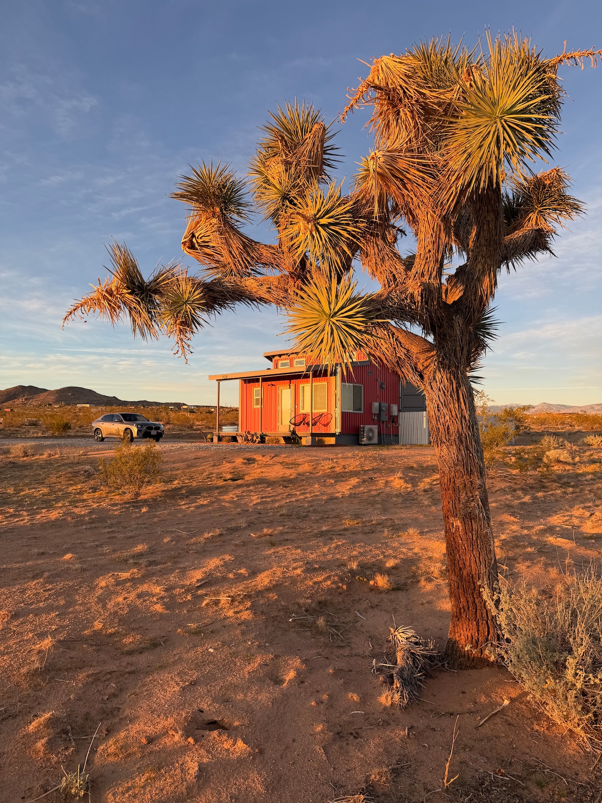 约书亚树离网集装箱房:热水浴缸、桑拿、吊床、户外淋浴/浴缸