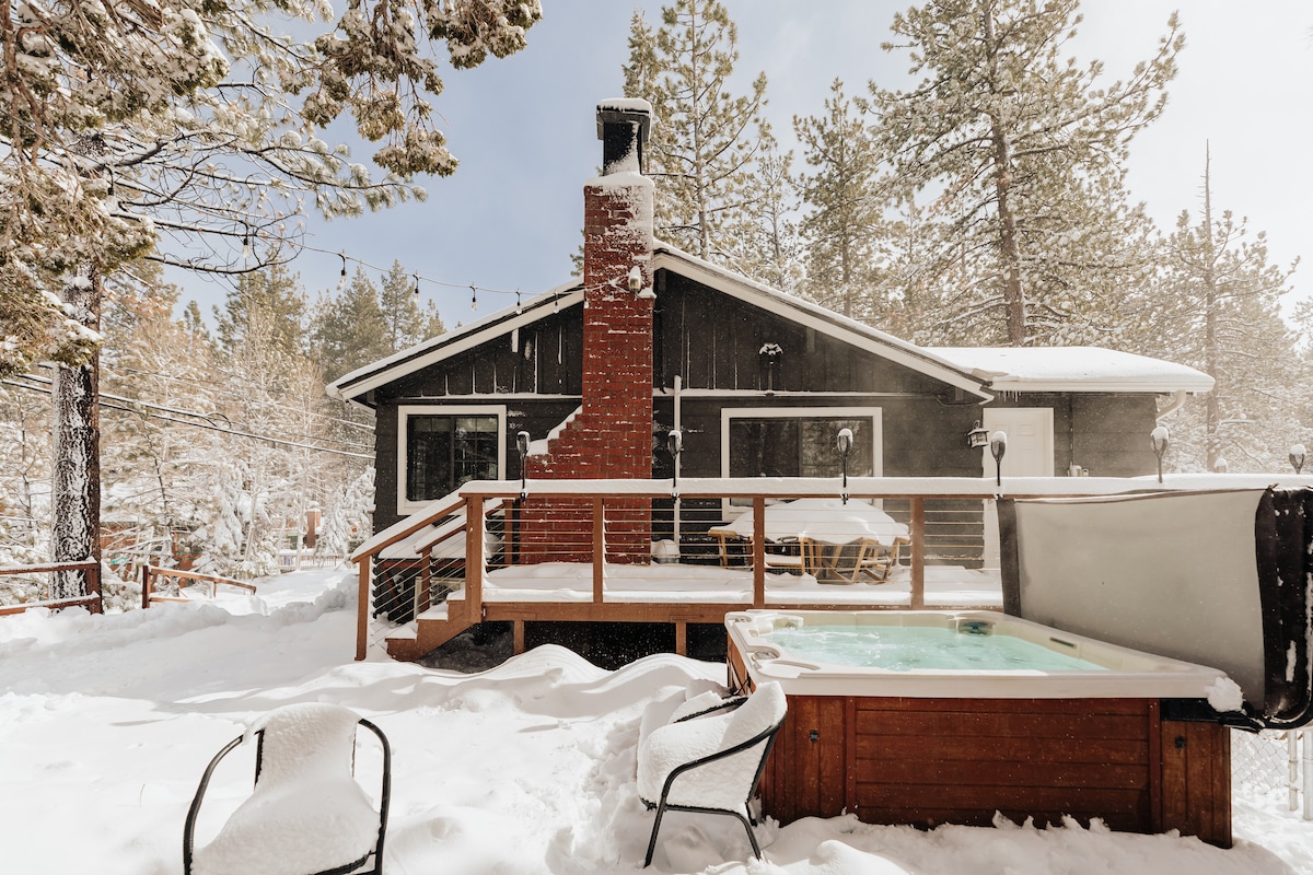 Escape to this modern retreat, just steps from Bear Mountain in Big Bear Lake’s upscale Moonridge neighborhood. Walk to the ski shuttle, nearby zoo, or adjacent golf course. Relax in style with fresh furnishings, a luxurious soaking tub with rain shower, and stunning Moonridge views from your private hillside deck. Enjoy the charm of Moonridge’s quaint village, perfect for a winter getaway.