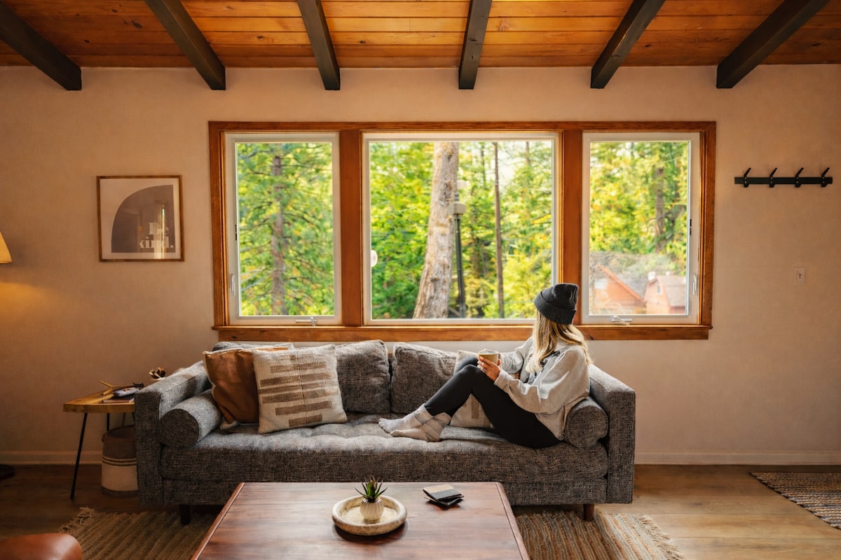 🌲Blue Jay’s Nest is a Peaceful Forest Retreat Near Giant Sequoias & Endless Trails. The serene cabin was designed by a Hollywood Oscar Winner to retreat with family to a simpler time, but with modern comforts. Ponderosa is tucked in the mountains along the scenic Great Western Divide. This is not a place for nightlife, shopping, or crowds. This is where you come to breathe pine-scented air, walk among ancient trees, follow the sound of mountain creeks, and fall asleep to the hush of the forest.
