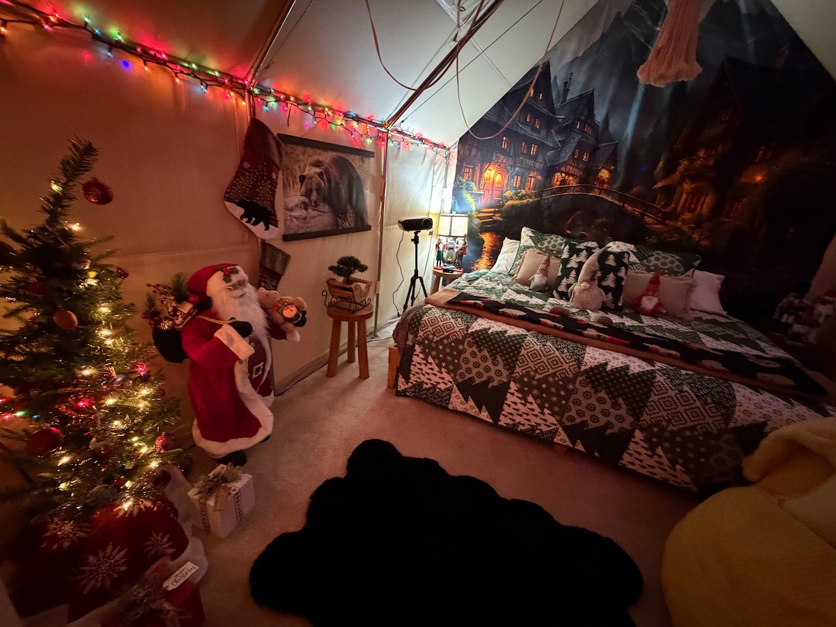 豪华露营帐篷B,带双人床、电/暖气
