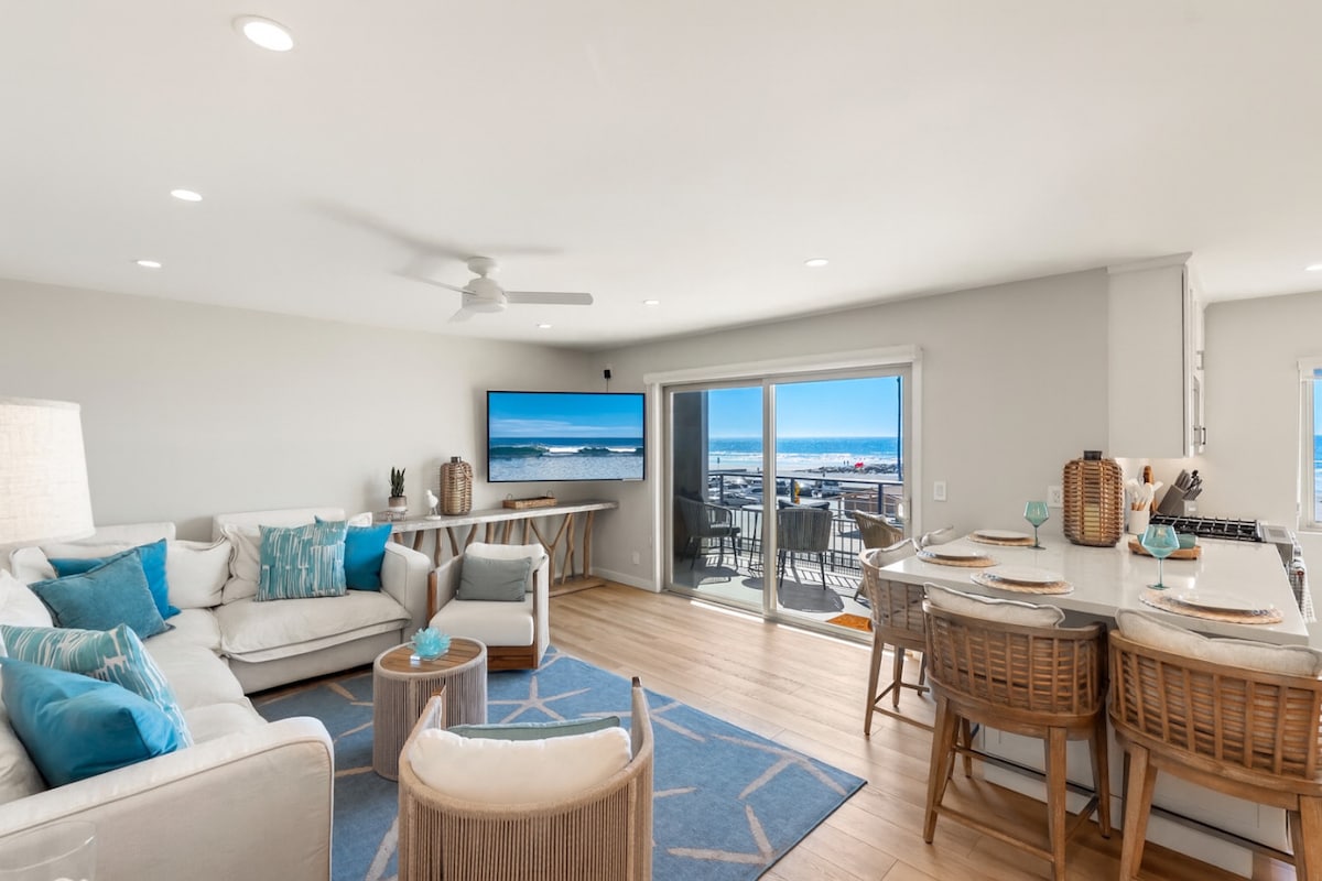 Unwind in style with breathtaking ocean views and golden sunsets at this remodeled 2B1B coastal retreat—just 15 minutes from SFO and San Francisco. Perched on the second floor of a duplex and steps from the beach, it’s ideal for whale watching, surfing, or peaceful seaside strolls. Oversized windows fill the space with natural light and stunning views. Enjoy brand-new smart appliances, stylish furniture, free under-unit parking, and voice-controlled lights and TV for a seamless, relaxing stay.