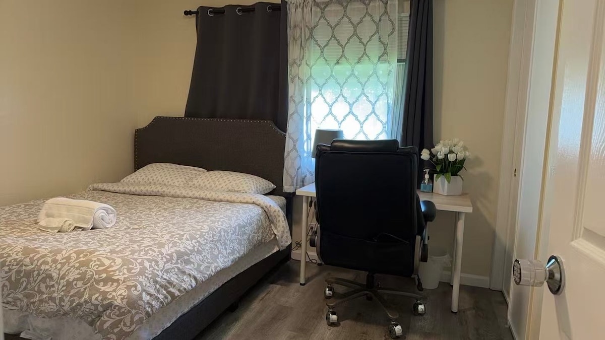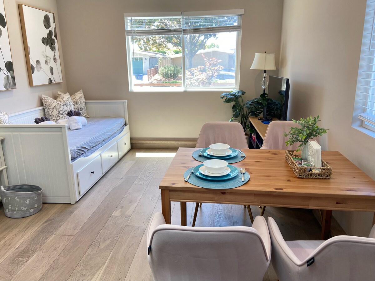 Newly updated guest house centrally located in the Silicon Valley. Easy access to everything! Close to San Jose Int. Airport, Downtown San Jose, Santa Row, Valley Fair Shopping Center, and more! This stylish guest house will meet all your needs. Fully equipped kitchen with refrigerator, oven/stove, Keurig coffee pot, and dish essentials. Large bedroom with comfortable King bed, en-suite bathroom, laundry, and lots of closet space. Beautiful private yard and private drive-way parking included!