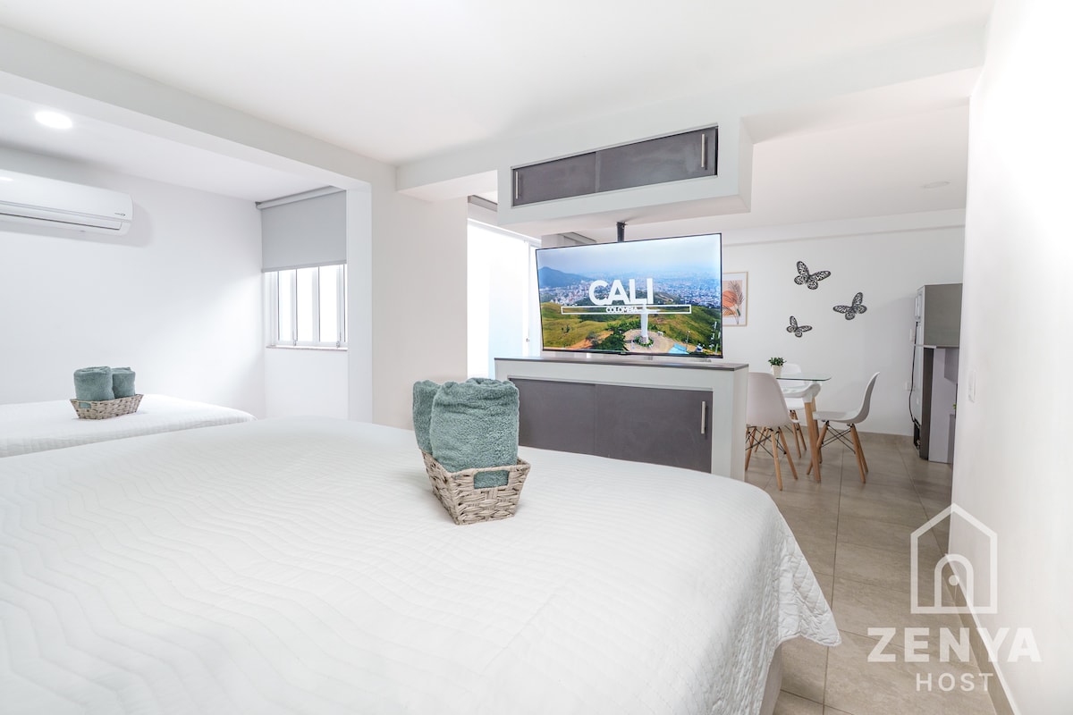 EN ZENYA HOST ENCONTRARAS: Hermoso LOFT ideal para descansar, en un sitio tranquilo y con todo lo que necesitas para no extrañar tu casa y vivir una estancia placentera En el norte de Cali, cerca a centros comerciales como Chipichape, EL Unico, Exito de la Flora, al terminal de transporte, La Fuerza Area Colombiana, a la salida a Yumbo, aeropuerto, parque de la caña, entre otros