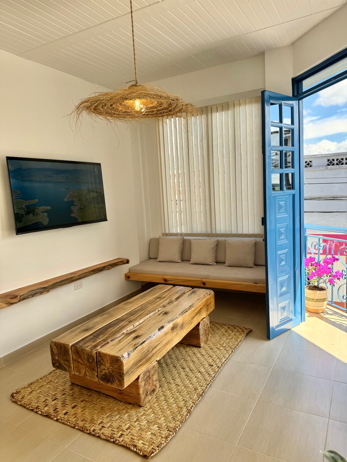 Disfruta un apartamento acogedor a una cuadra del parque principal. Relájate en la terraza con juegos de mesa, vino o un asado. Estarás cerca de restaurantes, bancos, tiendas, iglesia y museo, ideal para una estadía cómoda y práctica. Perfecto para parejas, familias o amigos que buscan descanso, privacidad y una inmejorable ubicación El alojamiento está a menos de una cuadra de parqueaderos aunque la calle al frente del alojamiento es muy segura. Estacionamiento bajo techo con costo adicional