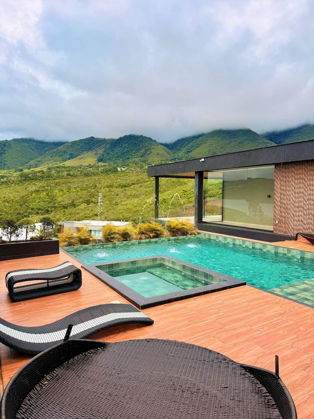 Un refugio exclusivo en medio de la naturaleza, descubre un paraíso de lujo y serenidad en el corazón del lago Calima, con un diseño arquitectónico y elegante la casa combina lujo y funcionalidad. Con vista al Lago Calima al frente y rodeada de montañas. Diseñada para desconectarte del estrés, ofrece una piscina y Jacuzzi privado, habitaciones con camas premium. El lago es conocido por sus actividades acuáticas como kitesurf, paddleboard y paseos en lancha y relájate viendo el atardecer.