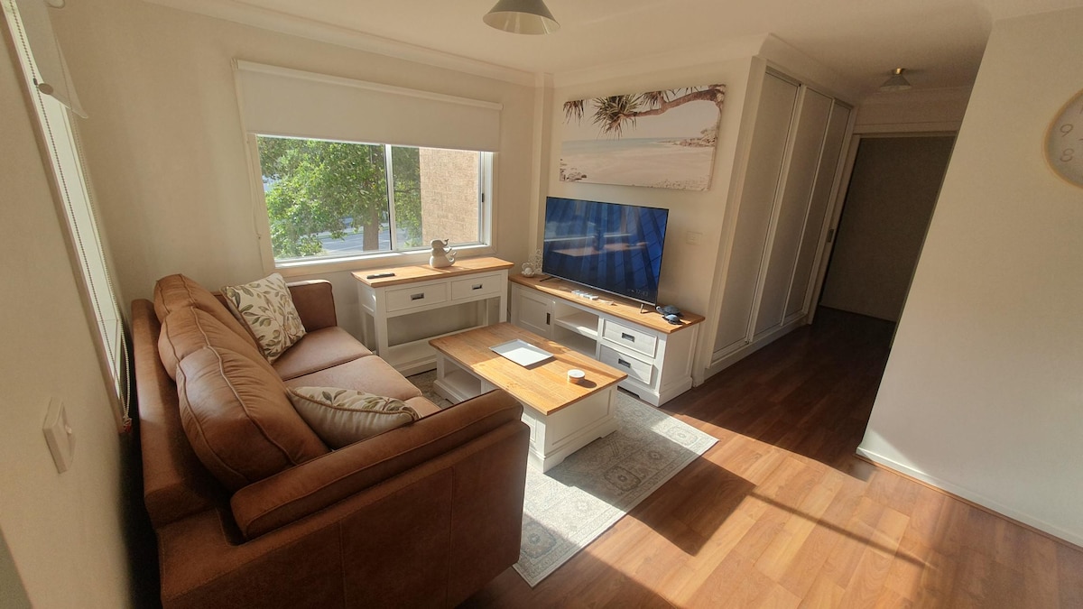 BEACHVIEWS and POSITIONLove your very own beach bar on your big deck! Watch waves, dolphins, surfers, or cross the road to join them! Own entrance,small S/C Studio, little kitchenette convenience, on Mollymook Beach, a part of large house in the popular beach strip. Comfortable queen mattress, electric log fire, shower, separate WC.Stroll the walking /bike track both to the left and to the right shops, clubs, cafes, and restaurants, Wifi, Netflix, Tea/coffee, full linen, BBQ and laundry avail