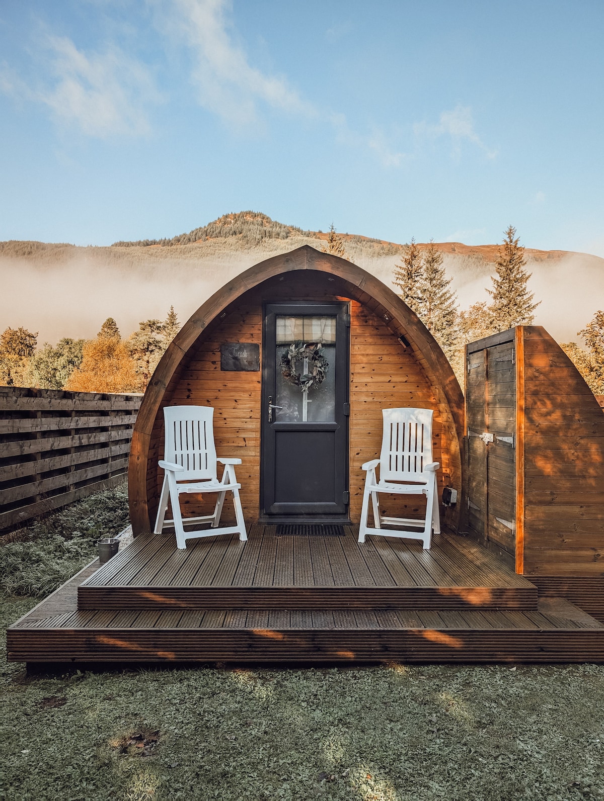 We are situated in the leafy village of Tarbet, and only a two minute walk to the shores of Loch Lomond. Our spacious suites have floor to ceiling windows with spectacular south facing views straight down the centre of Loch Lomond. Each suite has a lounge area, breakfast table, private access, private deck and tin roof shelter so you can enjoy the dramatic landscape come rain or shine. The suites have cool, quirky decor with WiFi & Netflix
