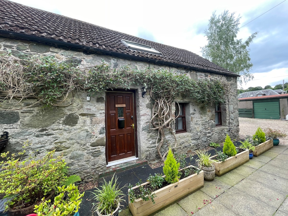 1 bedroom attached cottage in Highland Perthshire, 3 miles from Aberfeldy & Grandtully. Wood fired sauna in adjacent steading (1st use included). Idyllically situated on the foothills of Farragon hill, with beautiful walks right from the door. There is a spacious super kingsize (or twin) bedroom, spectacular living space, modern kitchen & shower room, private entrance, parking & outside seating area. Note location of the house as detailed in 'house rules' (4wd recommended for winter)