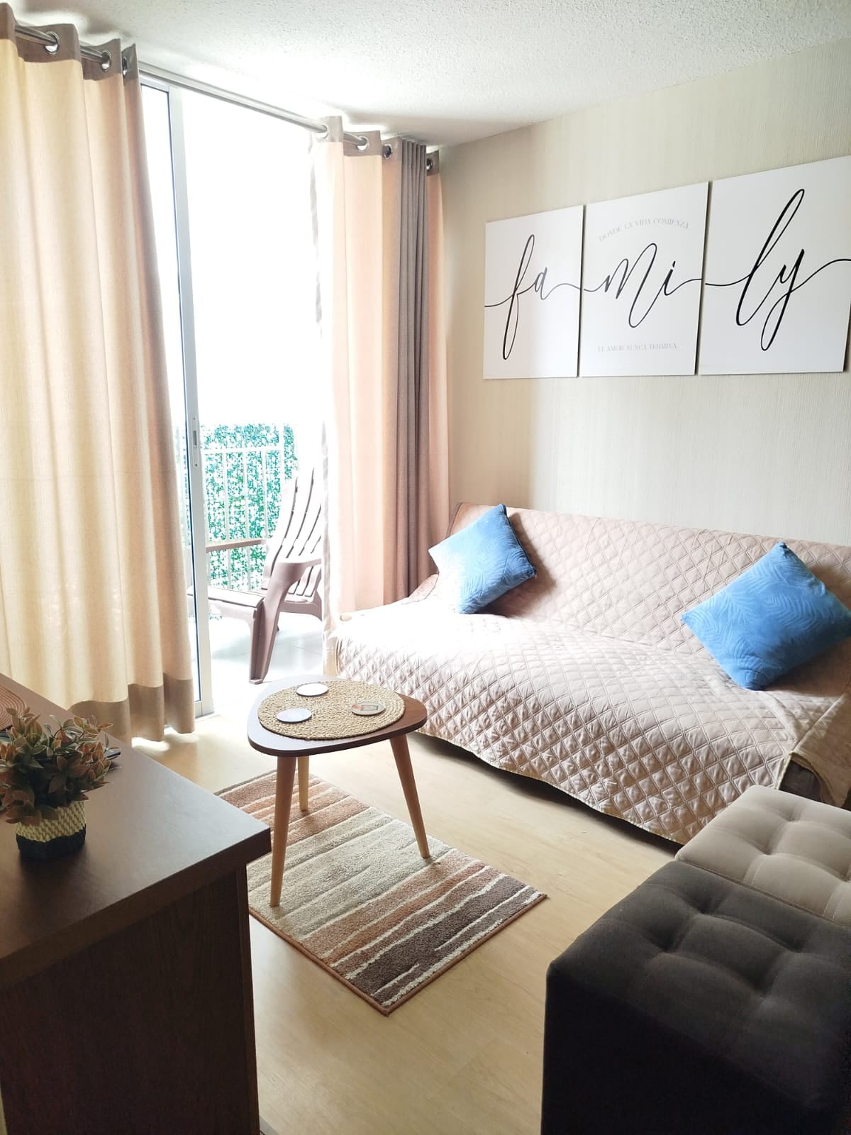 Si deseas sentirte como en casa y disfrutar de estancias agradables en un lugar ubicado a 15 minutos del aeropuerto. Mi Dpto. es espacioso, privado, con todas las comodidades y de uso exclusivo para una o dos personas. Cuenta con sala, comedor, cocina, lavandería, una habitación con cama dos plazas, y dos baños. La cocina está completamente equipada y existe un minibar. Cuento con Wi-fi y Netflix ideal para tus momentos de descanso. Además a 5 minutos hay un centro comercial.