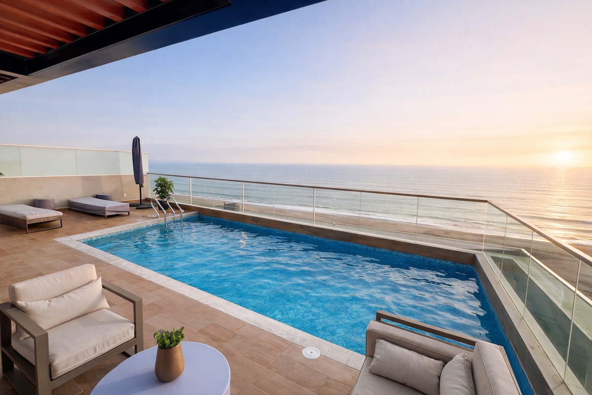 Looking for a 5 star Loft, close to the aeroport, the beach and close to the most wonderful touristic places in Lima. This is the place your looking for. This vintage - Industrial Loft offers you the best experience you can get. The most Beautiful Sea sights of Lima, the most comfortable sleep with its queen organic bed, high speed WIFI conection ideal for work or just relax. Chill with the 180° sea sight view pool, gaming room, cinema and much more.