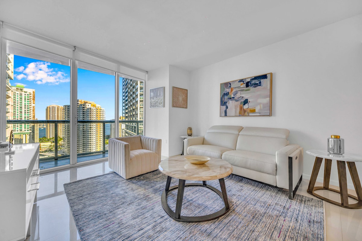 Enjoy a stylish experience with breathtaking views, our Brickell Miami condo provides all the pleasures, perks and pampering of a hotel but in a fully finished-private luxury residence. Ideally suited for leisure seekers, our high rise unit is located at the ocean edge with amazing views of the bay; perfect spot to watch the sunrise from your spacious outdoor patio complete with a hammock. Perfect location - 10-15 mins away from South Beach, Cruise Terminal and Miami airport.