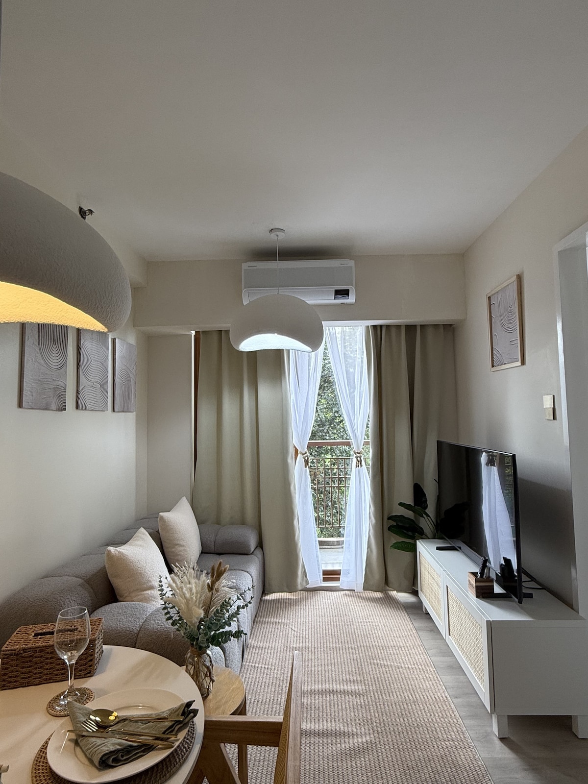 Escape to the intimate serenity of Skyloft at SMDC Trees Residences, a carefully curated urban haven. Experience a well-deserved retreat in this elegantly designed studio suite. The unique and aesthetic decor, complete with a bar counter, a game console, and a loft bed beside a panoramic window, provides the perfect setting for uninterrupted stargazing. Reconnect with your partner or share this tranquil haven with a dear friend. Book now and make memories! ♥️🌥️