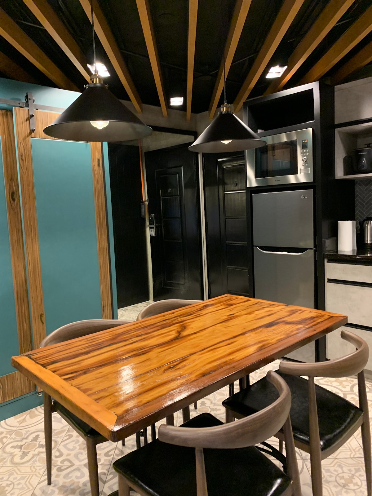 This modern industrial unit offers you a different ambiance. It has all the basic amenities you need for short or long stay. You can watch Netflix all day and work at the same time! Or you might want to relax in our super king bed ensuring you to have a fantastic sleep. You can cook your food or have it delivered to your door step. Check out my other 2 units in the same complex for group bookings with different feel and touch.