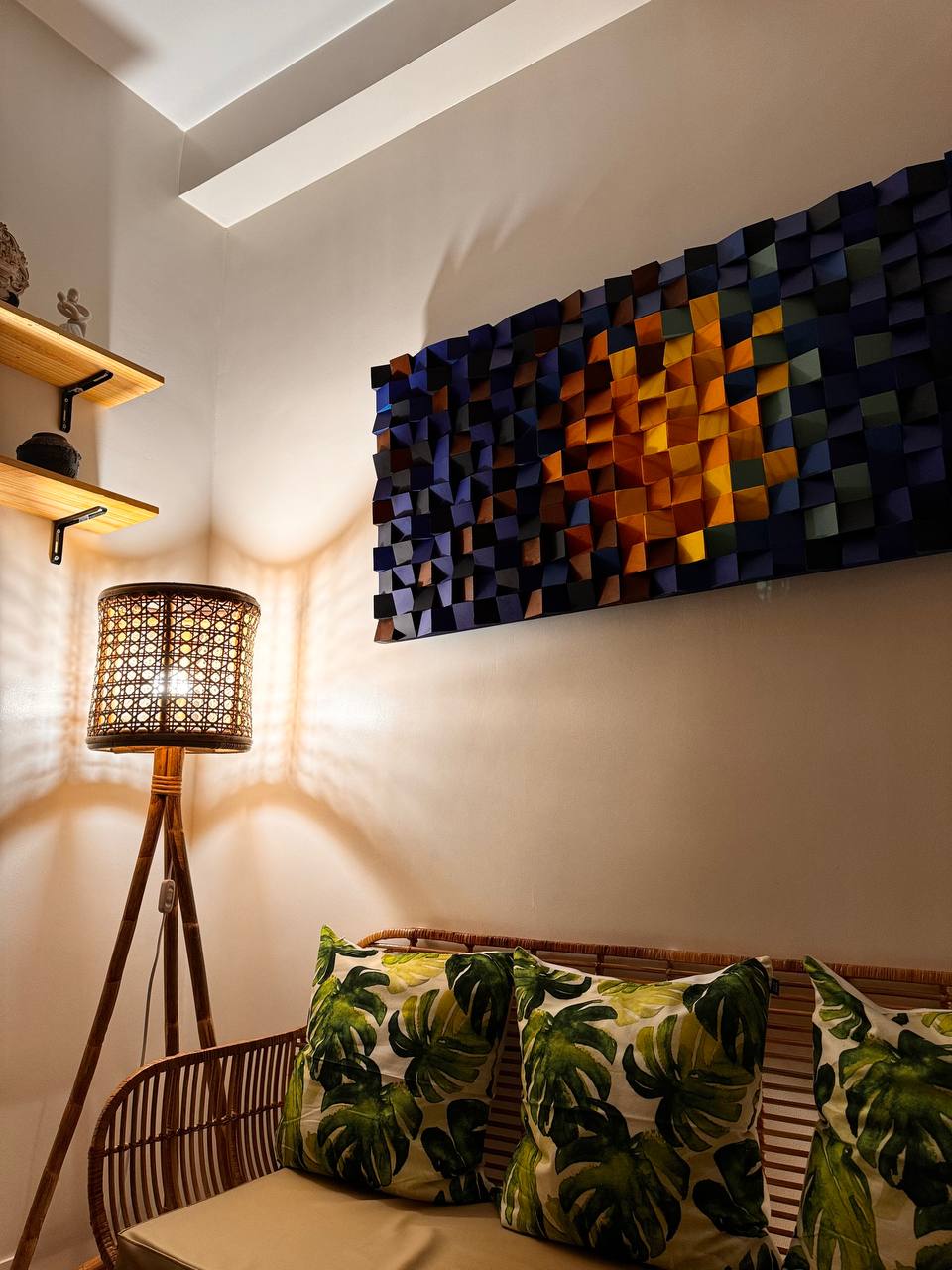 Welcome to Shia Staycation! A serene and stylish retreat within Trees Residences. Minimalist Design: Clean, simple, and elegant space. Entertainment Hub: 55" Smart TV with Netflix, Karaoke and a PS4. Ambiance Lighting: Multi-color lights for any mood. Comfortable Bed: Hotel-grade Double-sized bed for restful sleep. Modern Amenities: High-speed WiFi, fully equipped kitchen, study/computer table. Bathroom Comforts: Water heater with a table top. Ample Storage: Spacious cabinet for organization.