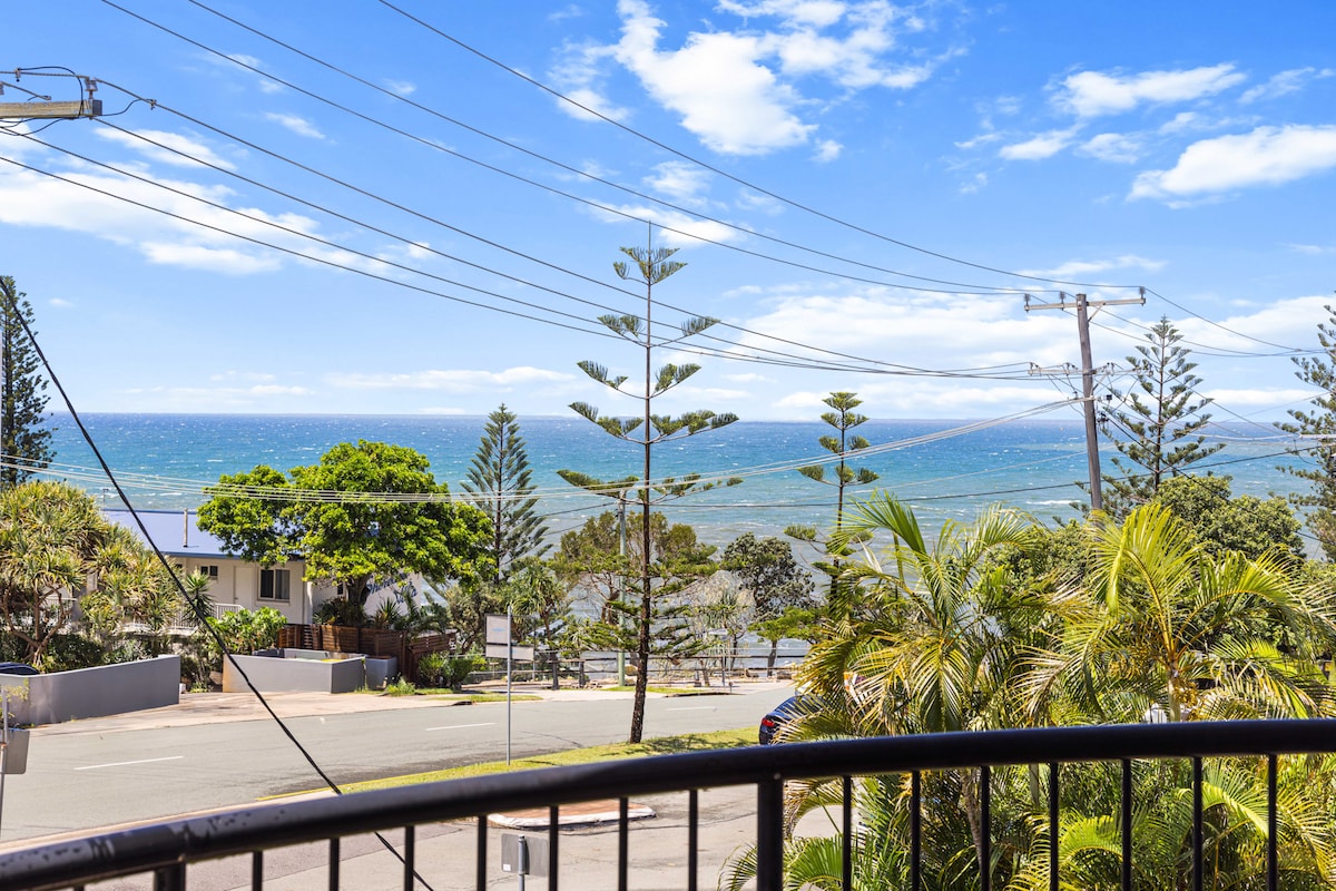 This spacious unit is 450 metres to the surf patrolled Kings Beach, rockpools, protected swimming areas, water park and playground, the oceanfront saltwater swimming pool, coastal walkway, cafes, restaurants and historical surf club. You can unpack your bags and never set foot in a car until the day you leave. The 3 balconies provide the perfect place to take in the sea breezes. No need to have an airconditioner in this neat 2 bedroom unit that has everything you need for a relaxing holiday.