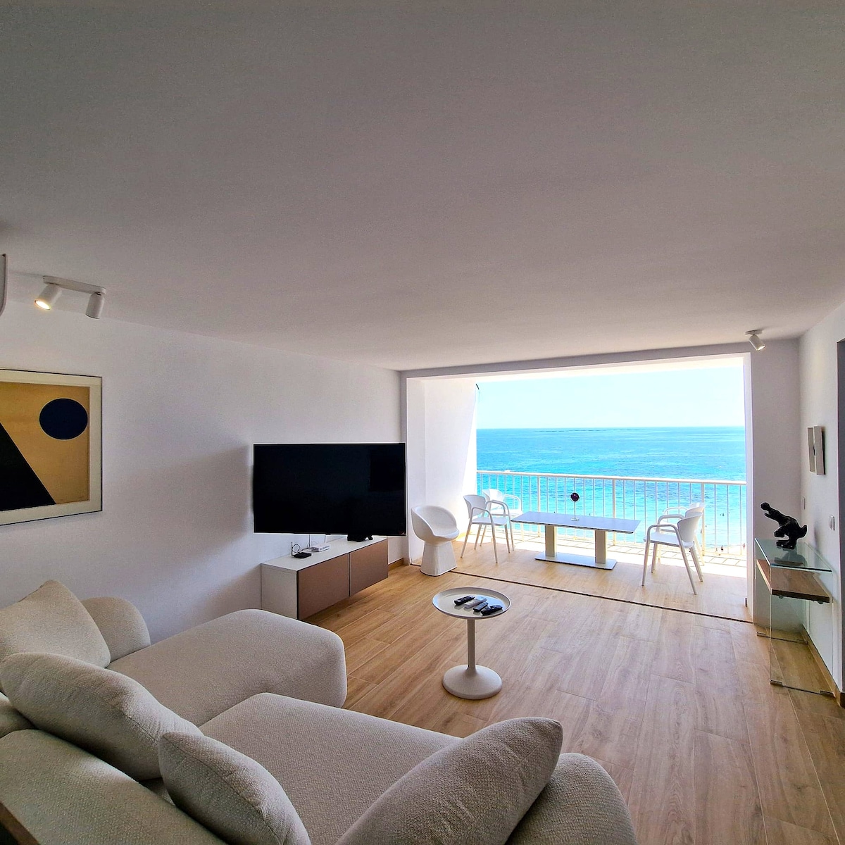 Diese in 2021 komplett sanierte 3-Zimmer Traumwohnung über ca. 80 qm mit Gemeinschaftspool besticht durch die einmalige Lage und den unverbauten 180 Grad Panorama Meerblick. Den Strand erreichst Du in nur 3 Minuten. Die Altstadt, sowie der Plaza Mayor befinden sich unmittelbar hinter dem Haus. Einkaufsmöglichkeiten und Restaurants, Bars etc. sind ebenfalls fußläufig in 3 Minuten zu erreichen. Die Wohnung beinhaltet alle Annehmlichkeiten, die man sich von einer Ferienwohnung wünscht.