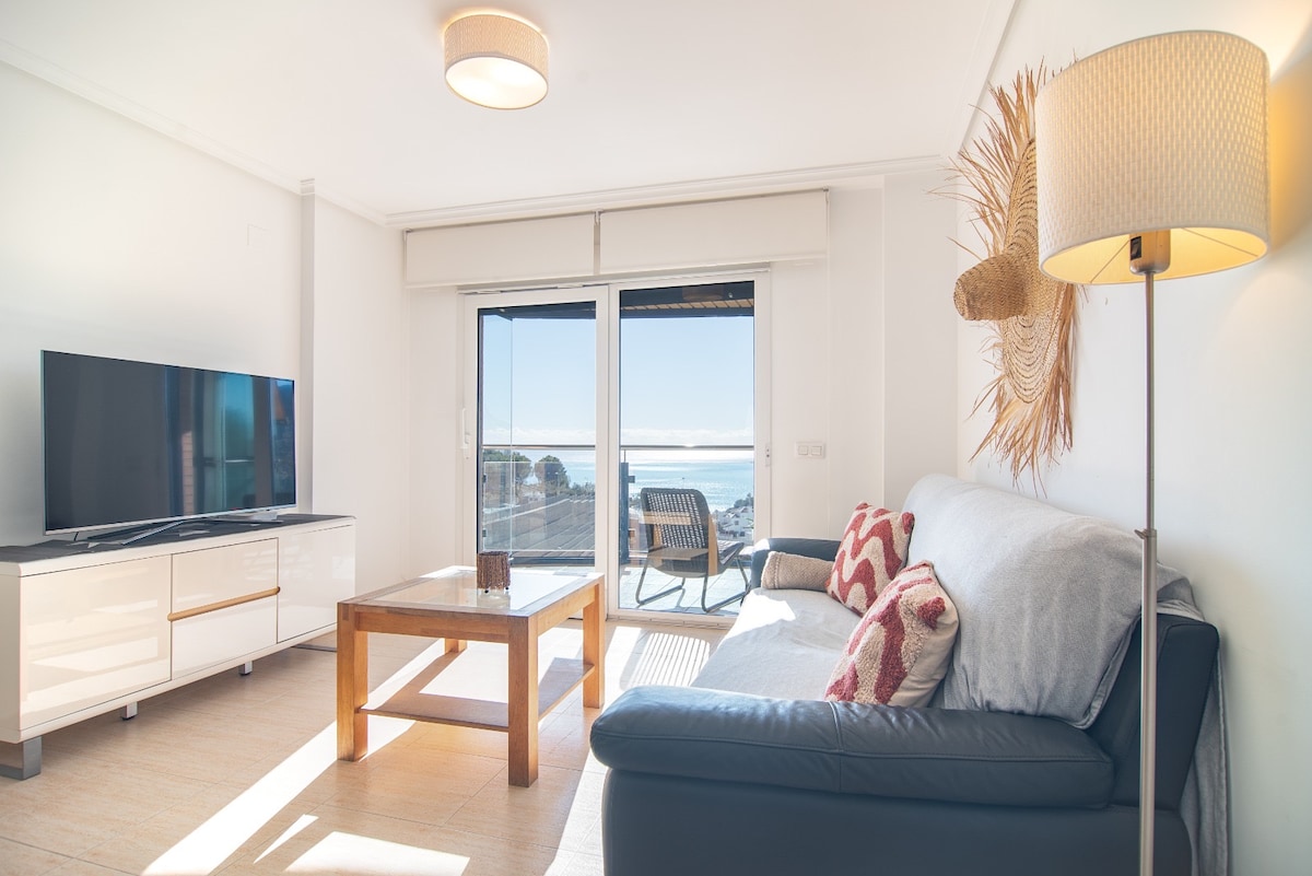 Bonito apartamento frente al mar con unas espectaculares vistas al mediterráneo. Inmejorable ubicación. Recién reformado. Muy cómodo y coqueto. Déjate llevar y te sentirás como en el camarote de un barco. Podrás pasar horas en la terraza escuchando el sonido del mar, disfrutando de sus maravillosas vistas y ver como te acaricia el mediterráneo.
