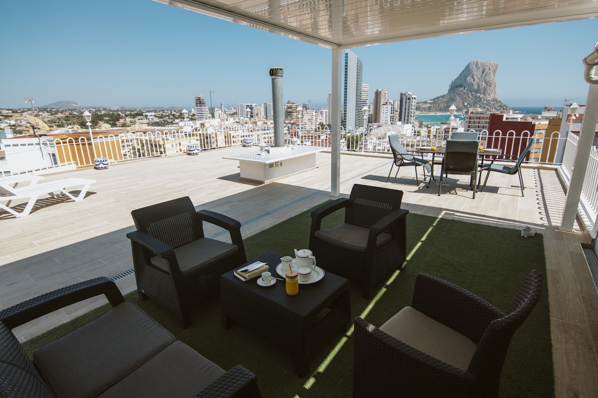 Deze unieke 1ste lijn- accommodatie is heel lichtrijk en smaakvol ingericht en heeft een adembenemend zeezicht,tevens volledig uitzicht op de Ifach. Vanuit je eigen afgelegen oase,loop je naar beneden zo het La Fossa strand op. Het ligt dichtbij restaurants en supermarkten,bushalte,kortom bij alles wat je nodig hebt,zonder dat je de auto hoeft te nemen.