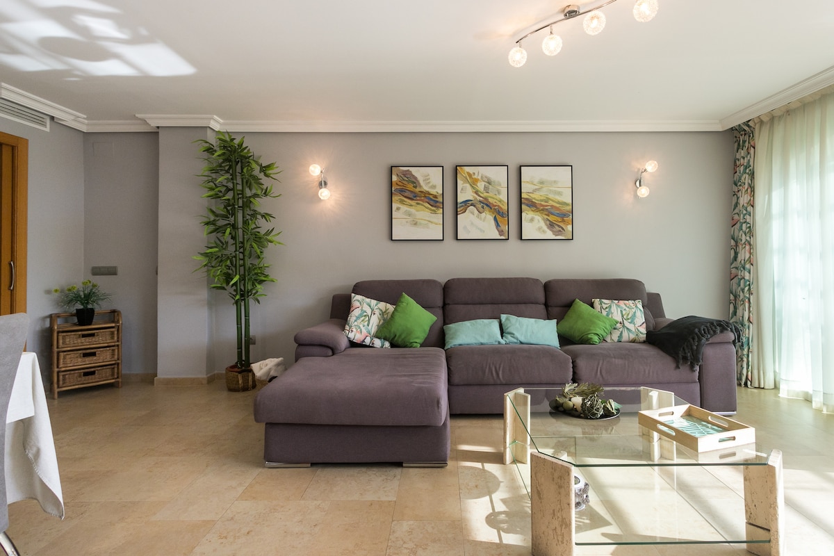 Fantastic bungalow completely newly renovated on the Arenal Beach in a quiet urbanization with direct access to gardens and the pool. It has 3 bedrooms (6 guests) and 2 full bathrooms. Two terraces, one of about 50m2 partially covered and glazed and a second terrace with a covered laundry area. Full air conditioning and heating. Two bedrooms and the porche have ceiling fans. WIFI. Free parking outside. Travel cot, high chair, baby bath tube and beach towels on request and chargeable