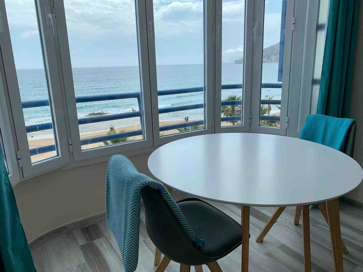 Este alojamiento tiene una ubicación estratégica: En la playa centro de Villajoyosa, solo tiene que cruzar el paseo para acceder a la playa. Apartamento con una habitación y un salón con sofa-cama, ideal para un matrimonio y dos niños. Se encuentra en la planta décima con unas vistas espectaculares. Cocina vitrocerámica, cafetera marca Dolcegusto, frigorífico, horno microondas y Lavadora. No se permite fumar en el apartamento.