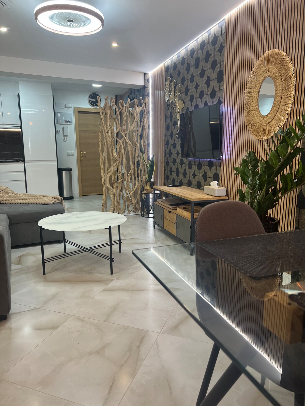 Luxurious apartment with terrace with amazing sea views in the state-of-the-art SUNSET CLIFFS building in Benidorm on Poniente beach. This is an extremely beautiful place for your vacation. Feel the charm of the first line of the sea in Spain. The apartment has all amenities, is fully furnished with sea and mountain views. Two swimming pools, jacuzzi with whirlpool, gym, sauna, cinema room, tennis courts, multipurpose sports field, children's play area, pool bar