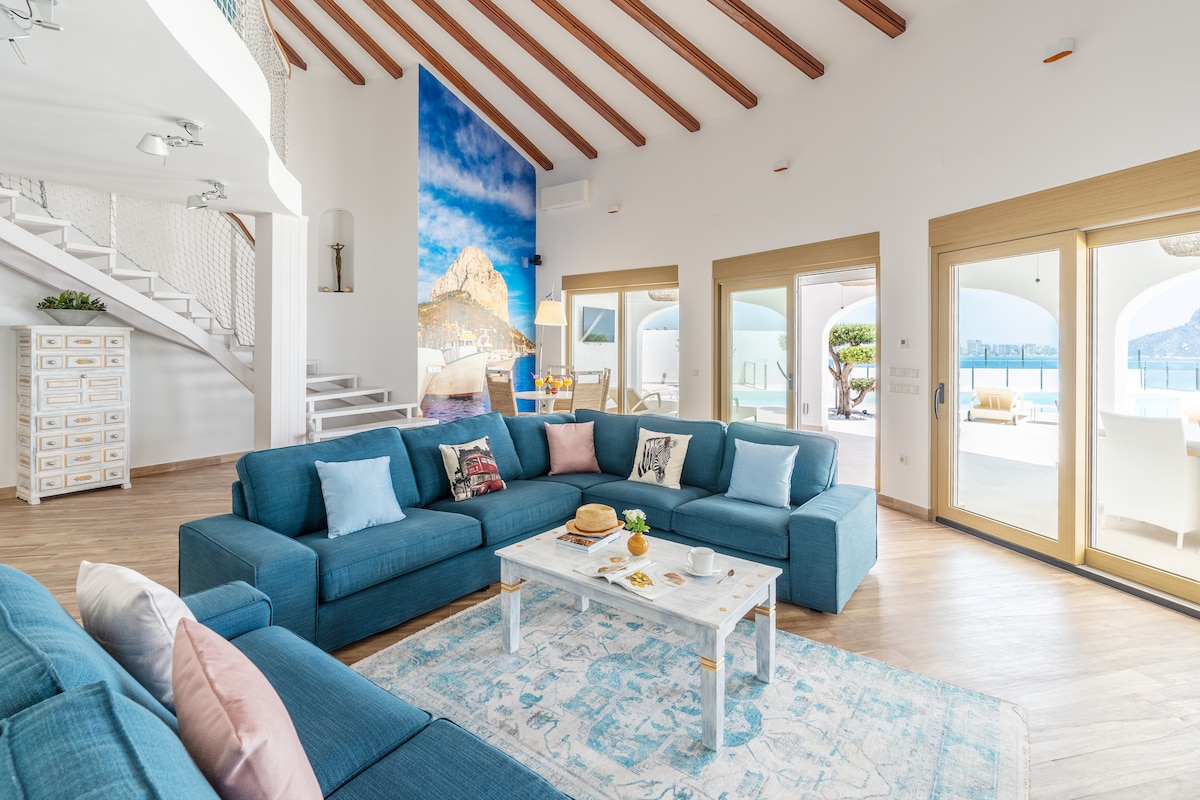 Stylish frontline villa with 17-meter infinity pool , jacuzzi, saunas, and a terrace with 180° sea views and the iconic Peñón de Ifach — symbol of Costa Blanca. Within 5 min walk: sandy beach, Marina Port Blanc (boat rentals, jet skis, water sports), restaurants (Oscar, Puerto Blanco, Maryvilla), and tennis courts. In 2026, the port will feature a beach bar and panoramic restaurants. Calpe center — 5 min drive, Benidorm — 25 min, Alicante Airport — 55 min, Valencia — 1h 20 min.