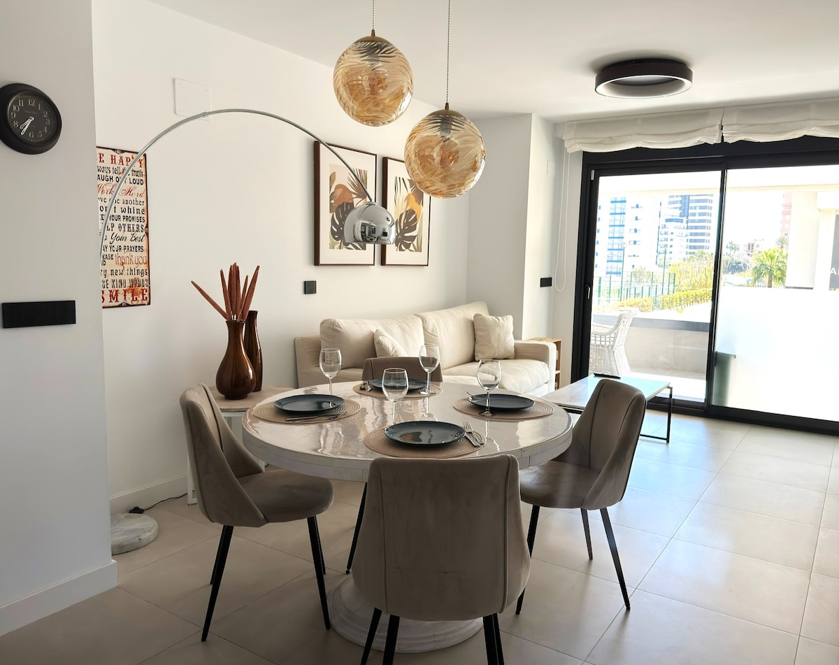Welcome to our modern and brand-new apartment with air conditioning and stunning views. You have access to the pool, gym, Padel, and 2 free parking! You'll find 3 bedrooms and 2 bathrooms, a terrace with a table for your meals, a living room, and a kitchen, all to make your vacation perfect. You can walk around, and you'll be steps away from the sea, the Peñon de Ifach, and Las Salinas! And a 15-minute walk from the historic center. Book now and enjoy a comfortable and serene vacation!