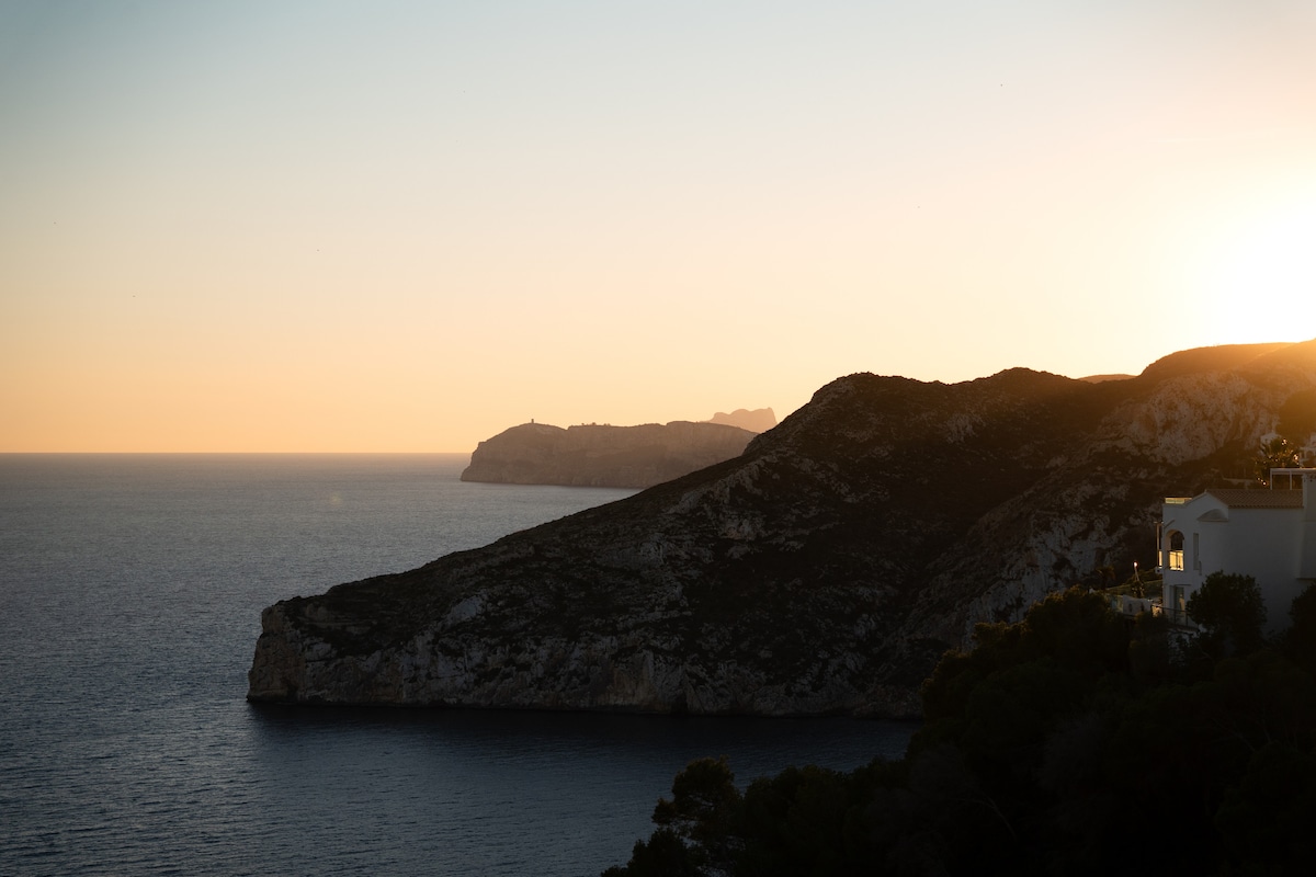 "Villa Sunset Moraira" - Enjoy dreamy days in a modernized Spanish-style villa for up to 8 guests. Highlights: - private pool (with heating) - large outdoor area with south-facing views - Outdoor kitchen with barbecue - air conditioning, fans and heating in all rooms - high-quality furnishings - 3 bedrooms with box-spring beds - 2 modern bathrooms with shower and bathtub - fully equipped kitchen - fast Wi-Fi - Smart TV - quiet location, close to the beach ☆ "Clio's villa is an absolute Jewel!"