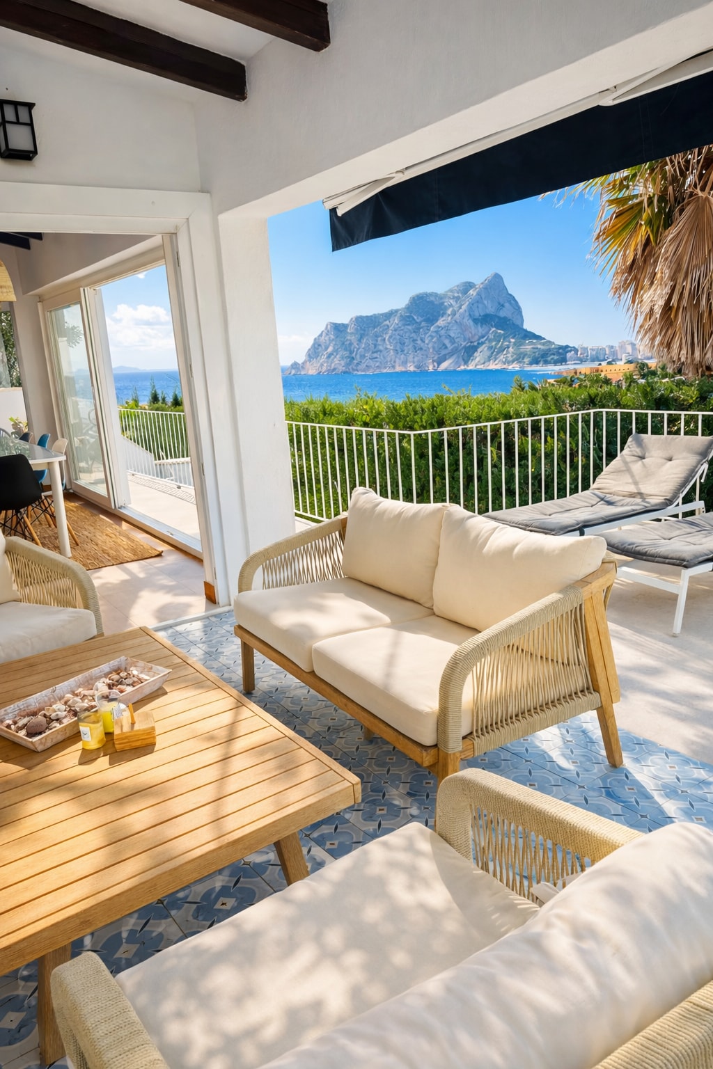 Stylish frontline villa with 17-meter infinity pool , jacuzzi, saunas, and a terrace with 180° sea views and the iconic Peñón de Ifach — symbol of Costa Blanca. Within 5 min walk: sandy beach, Marina Port Blanc (boat rentals, jet skis, water sports), restaurants (Oscar, Puerto Blanco, Maryvilla), and tennis courts. In 2026, the port will feature a beach bar and panoramic restaurants. Calpe center — 5 min drive, Benidorm — 25 min, Alicante Airport — 55 min, Valencia — 1h 20 min.