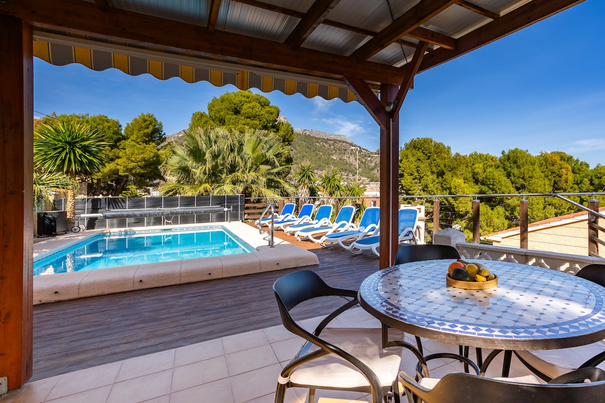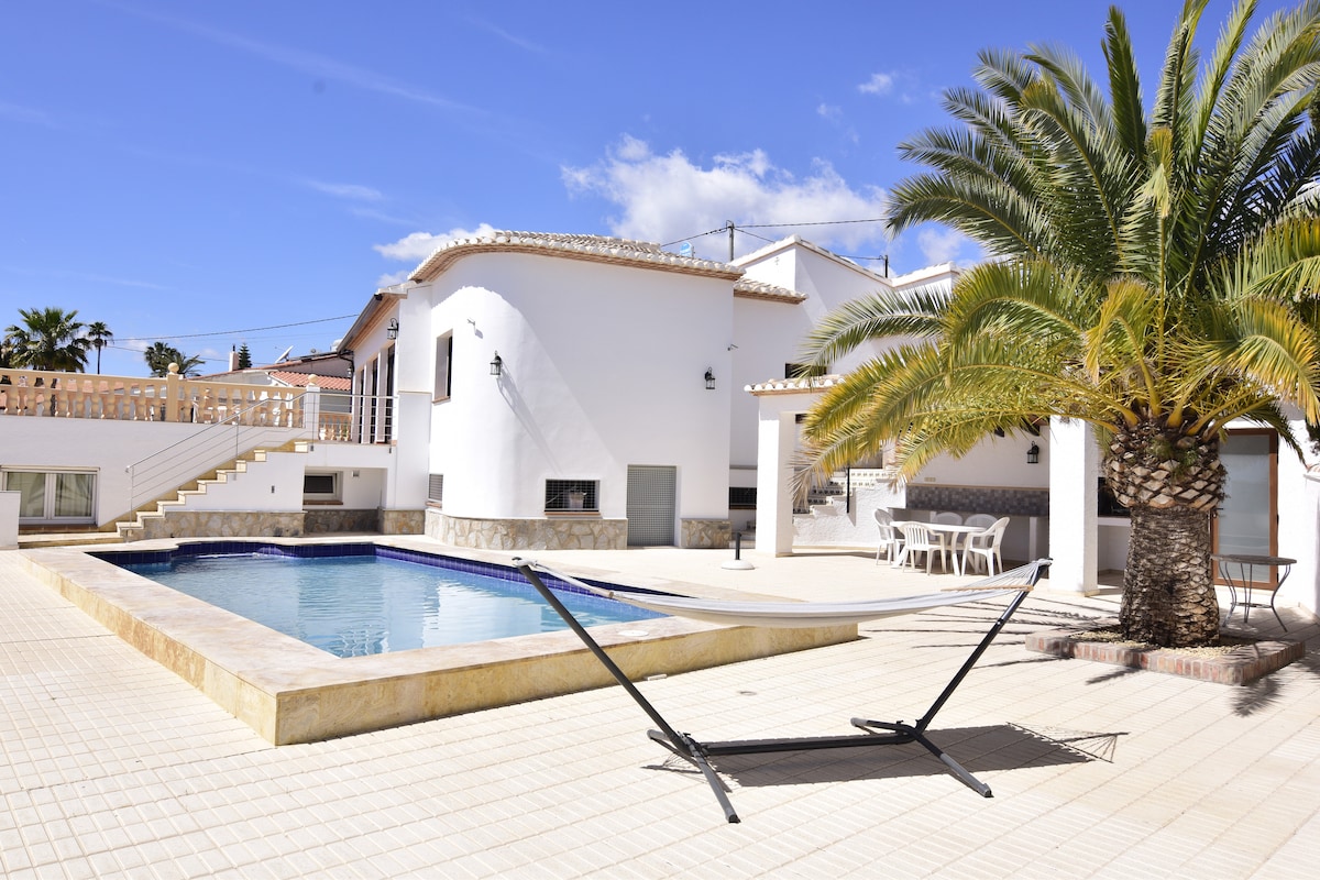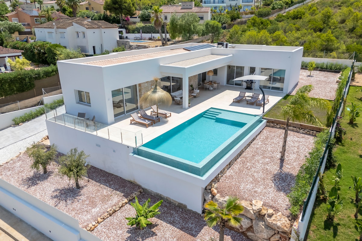 "Villa Sunset Moraira" - Enjoy dreamy days in a modernized Spanish-style villa for up to 8 guests. Highlights: - private pool (with heating) - large outdoor area with south-facing views - Outdoor kitchen with barbecue - air conditioning, fans and heating in all rooms - high-quality furnishings - 3 bedrooms with box-spring beds - 2 modern bathrooms with shower and bathtub - fully equipped kitchen - fast Wi-Fi - Smart TV - quiet location, close to the beach ☆ "Clio's villa is an absolute Jewel!"