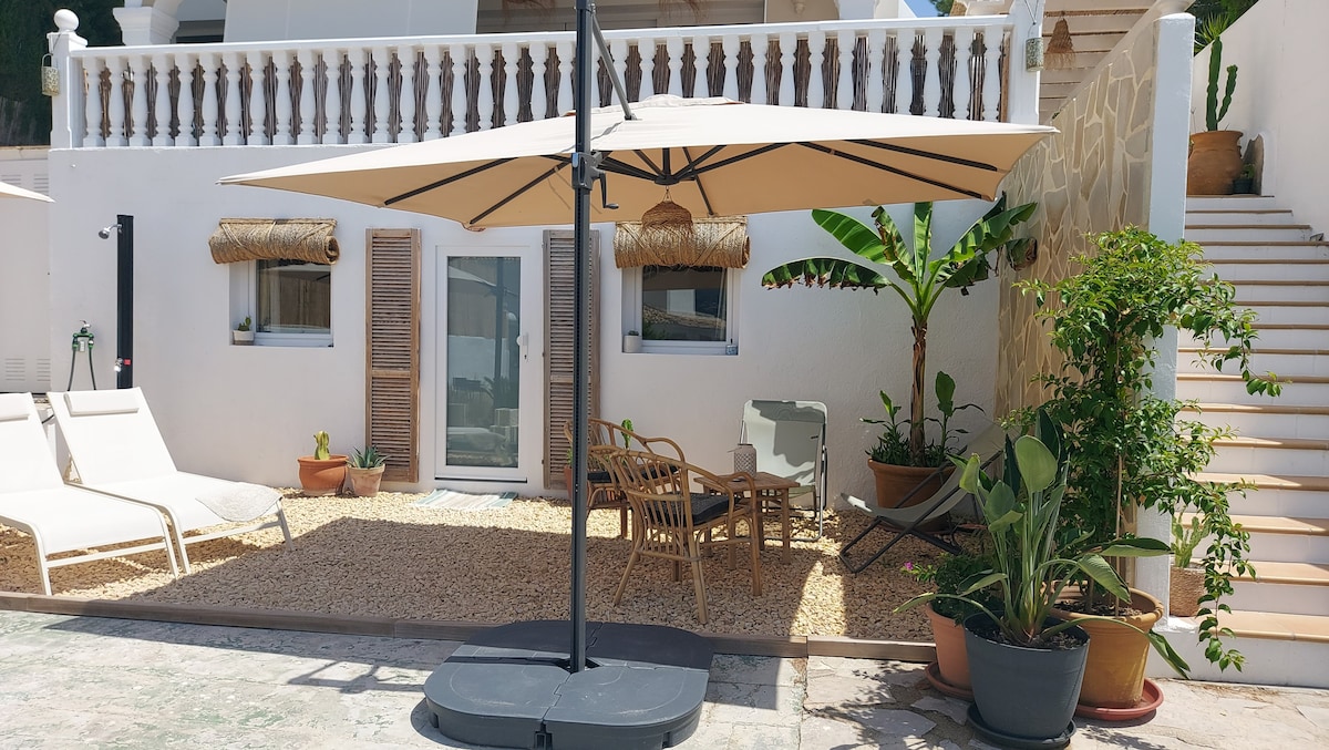 Détendez-vous dans ce logement calme et décoré avec soin, entièrement rénové en 2025. Vous serez accueillis par les propriétaires qui habitent juste au-dessus. Terrasse privée orientée sud ouest avec vue sur la Sierra d'Oltá. L'appartement est équipé d'une chambre double et d'un divan-lit pour recevoir jusqu'à 4 personnes. Salle de bain avec douche, jolie cuisine bien équipée et parking privé. Situé à 1800 mètres de la mer et du centre ville de Calpe. Départ de promenades en forêt à 50 mètres.