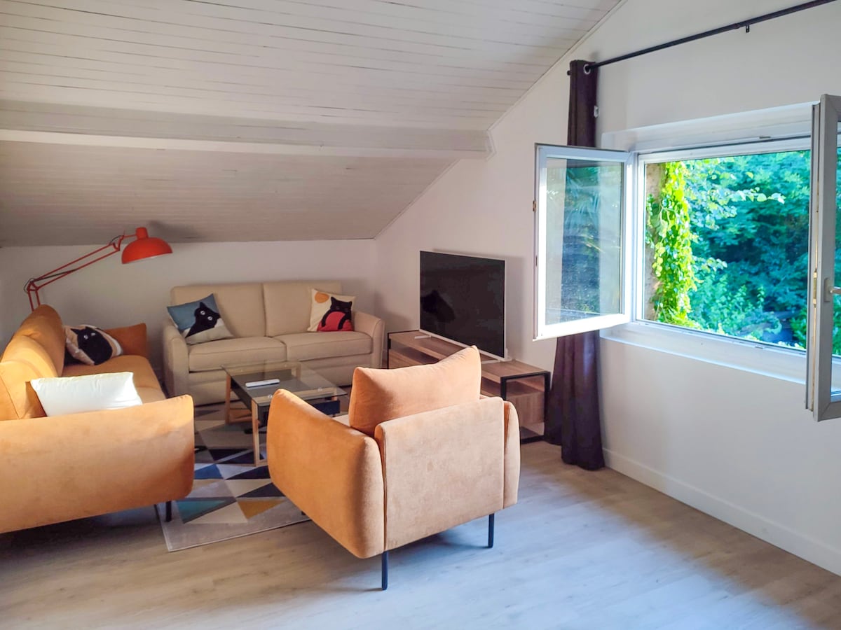 Calme et ressourçant, tels sont les maîtres mots de ce logis situé en rez de jardin d'une maison de famille. Admirez la vue sur le Rhône depuis votre terrasse. Parfaitement équipé, il dispose d'une chambre avec un lit Queen Size de 2 x 80x200 ou d'une literie 160*200 , d'une SB baignoire, d'une cuisine avec tous les ustensiles nécessaires et d'une méridienne de 177*78 cm pouvant servir de lit pour un enfant. Park couvert à 200m en bas du jardin. Attention : accès par petite allée pavée.