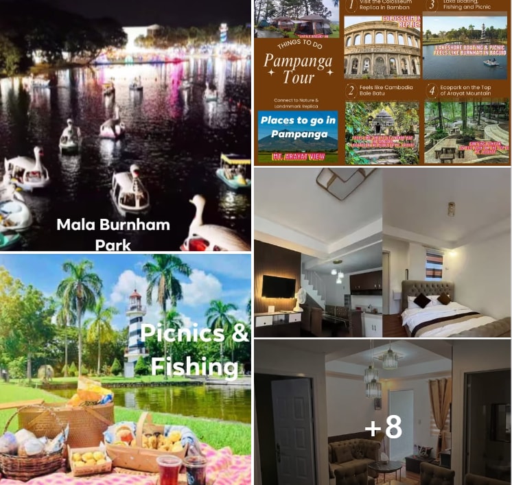A 2BDRM unit both with AC, very proximate SM City Pampanga (a transport hub) where you can ride to different destinations: Bataan, Zambales, Manila, Nueva Ecija, Tarlac, etc... A ride to Clark International Airport: for Bohol, Boracay , Palawan etc. ☆COMMUTING GUESTS: Trikes are available both SM & Robinsons sides. ☆Host is art collector, VIEW/buy some of his collection if you may be interested. ☆Golf lesson can be arranged too at Beverly Golf Course.