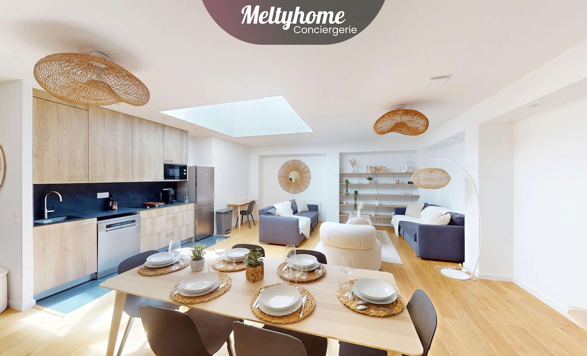 ✨ Bienvenue dans cet appartement haut de gamme proche du centre historique de Caen, commerces, bars et restaurants à deux pas. Espace cosy et bien agencé : cuisine équipée, salon confortable, coin nuit séparé et salles d’eau dans chaque chambre. Linge fourni pour un séjour tout confort. Idéal pour 4 personnes, en famille ou entre amis, pour une escapade ou du télétravail grâce au coin bureau et la fibre haut débit.